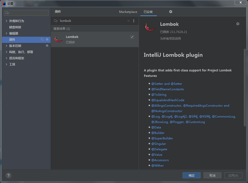 2.安装lombok插件