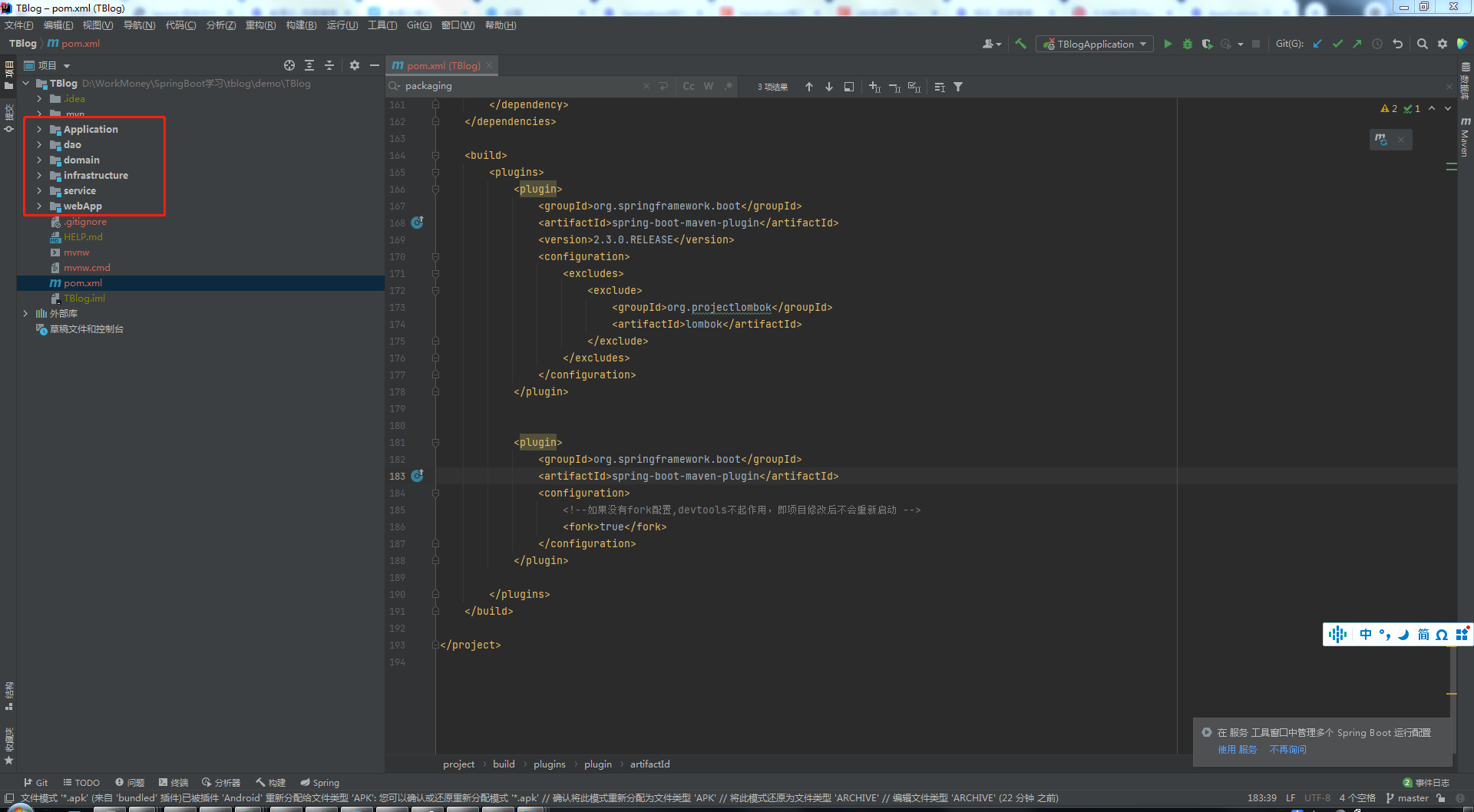 <!--1.将这里的父模块由springframework改为我们的TBlog-->